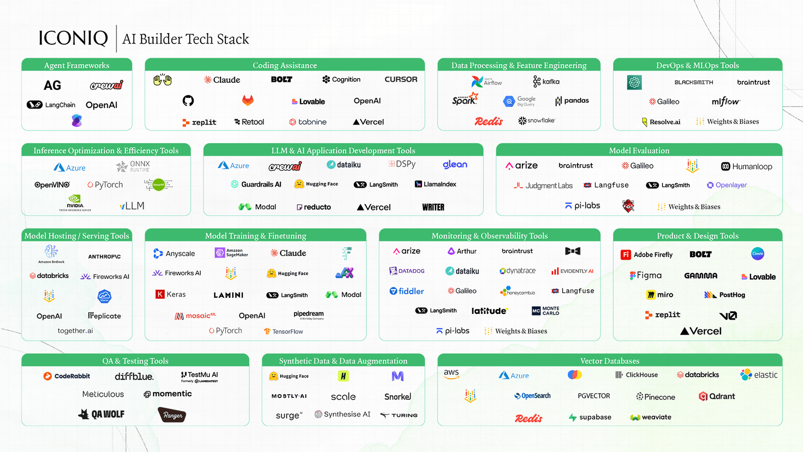 The AI tooling ecosystem is maturing around the most widely adopted tools for AI product development (image above).