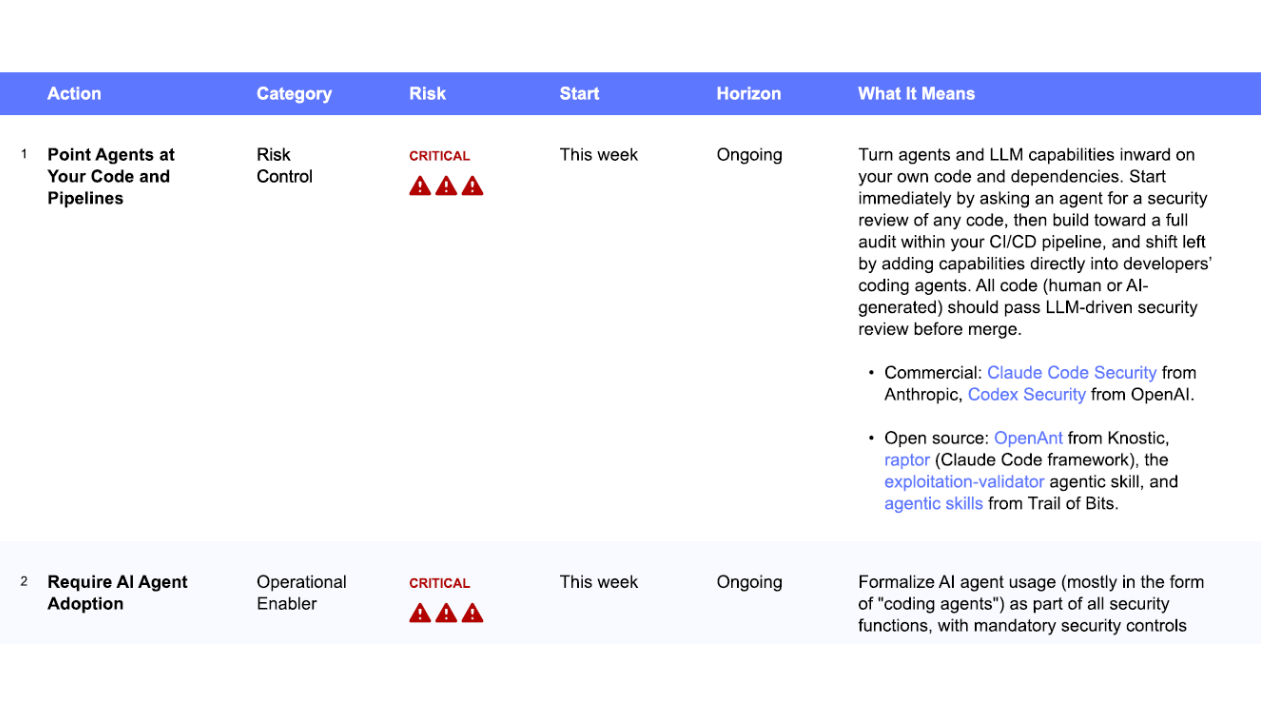 The report outlines 13 key risks and an 11-point action plan (extract in image above) to help CISOs build more resilient defenses.